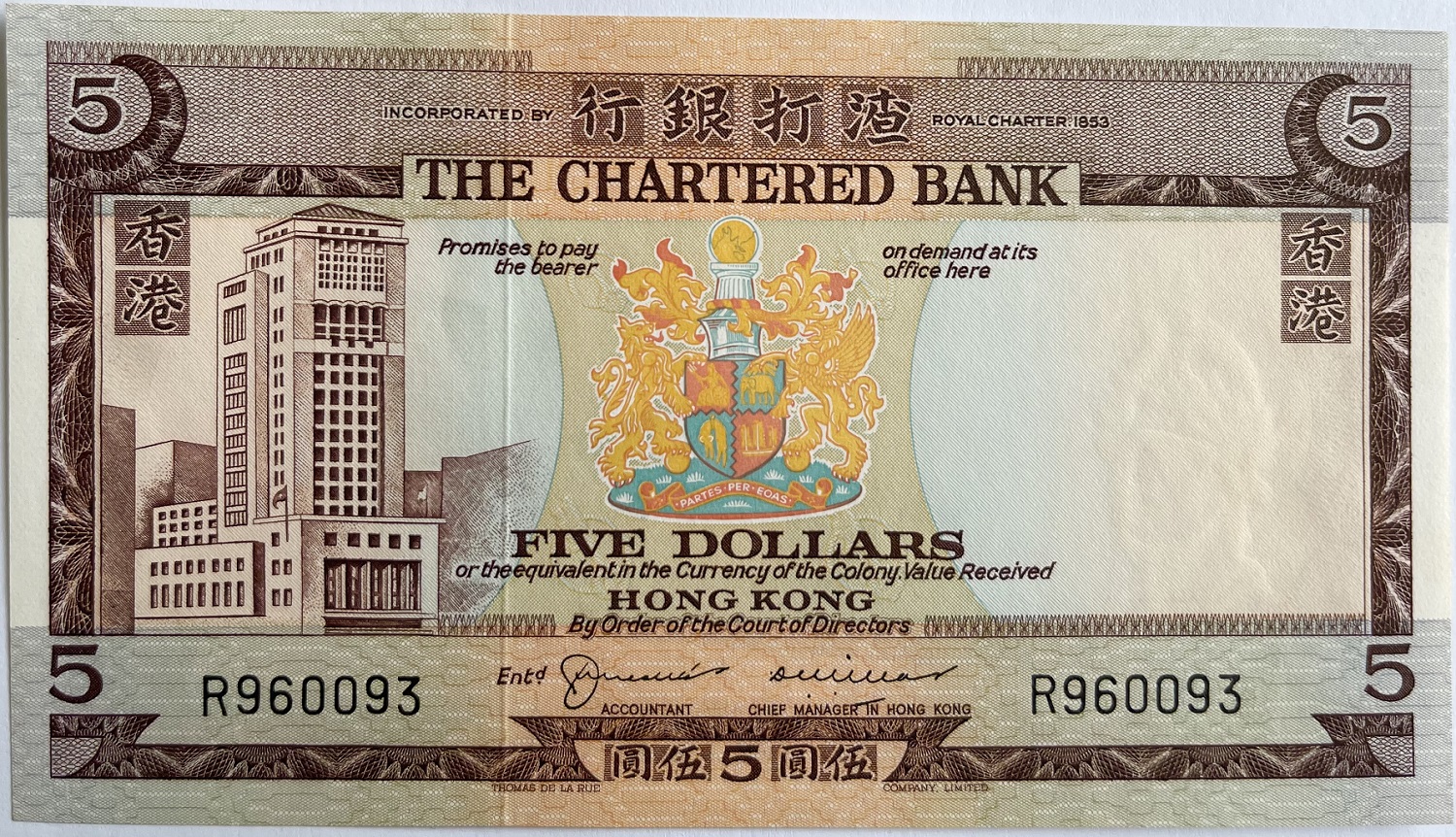 "Hong Kong" 5 Dollars 1975 (P73b) - unz.