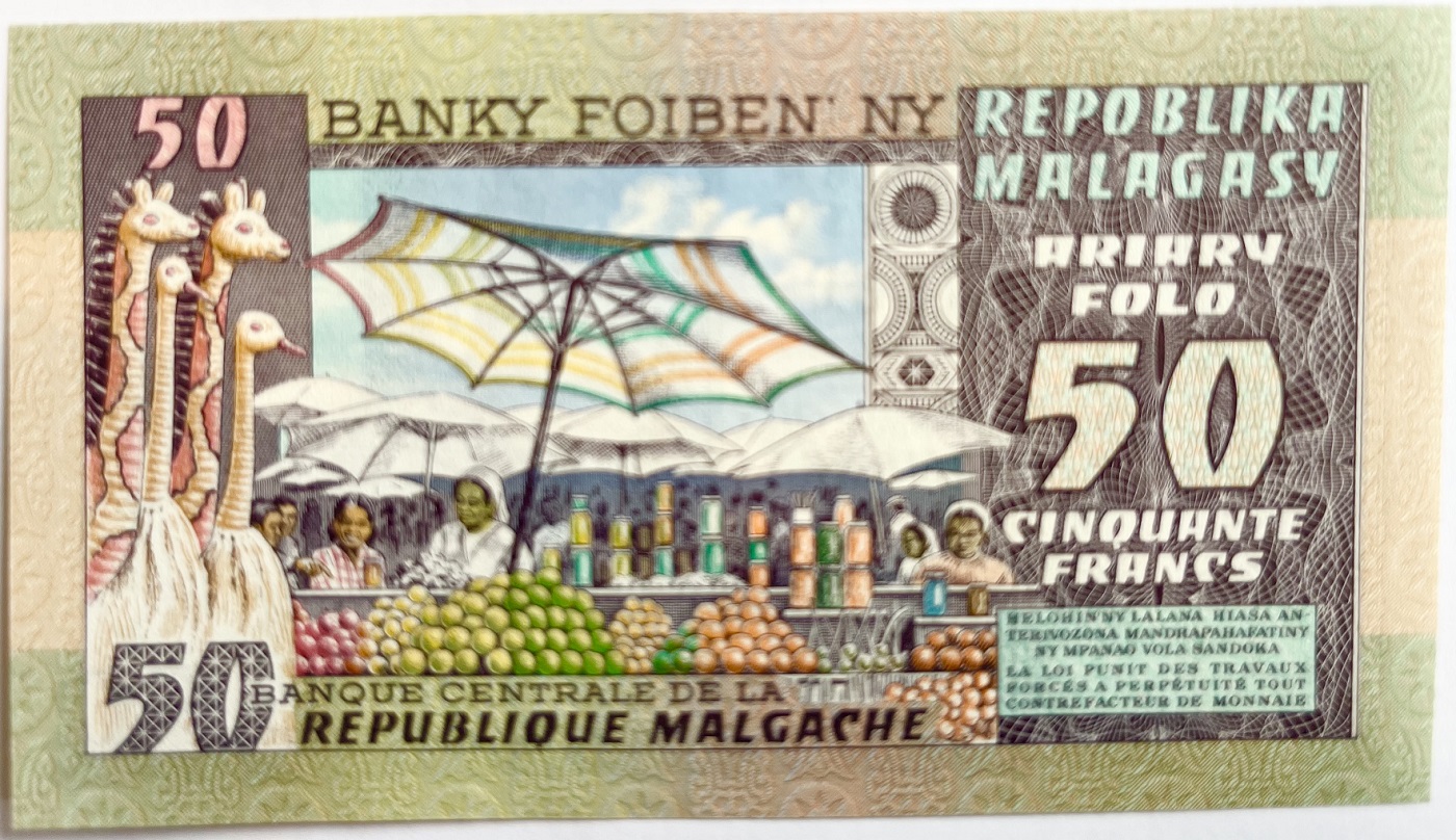 "Madagascar" 50 Francs (1974) P62 - unz.