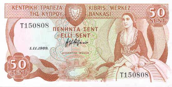 "Zypern" 50 Cents 1989 (P52) - unz.