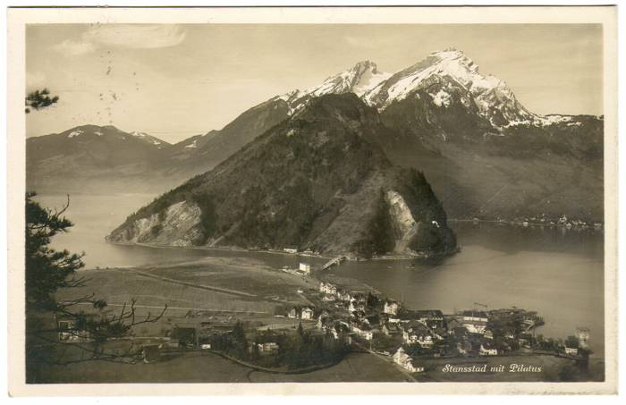 RARITÃâ€Å¾T und spezial: Postkarte mit Stansstad und Pilatus 1929 - gebraucht, mit 10Rp Tell Briefmarke