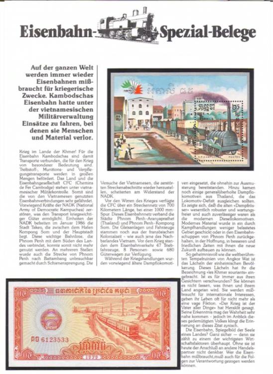 "Cambodia" 1 Riel 1979 "Eisenbahn Spezial-Belege" - unz.