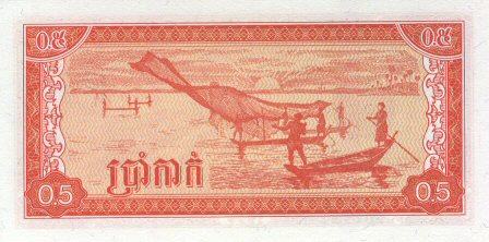 "Cambodia" 0.5 Riel 1979 (P27a) "Eisenbahn Spezial-Belege" + Spziele Briefmarke - unz.