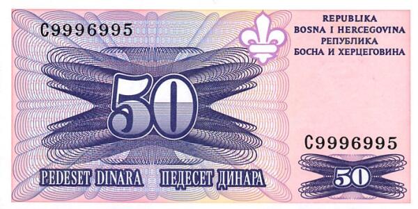 "Bosnia - Herzegovina" 50 Dinara (1995) - unz.