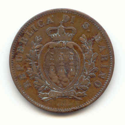 Sehr selten: San Marino "10 Centesimi" 1893 - Zustand: sehr schön