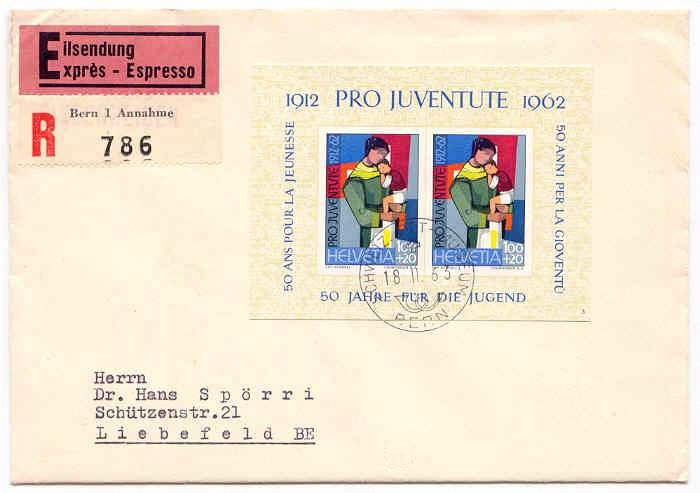 Pro Juventute 50 Jahre: Eilsendung Bern - Liebefeld 1962
